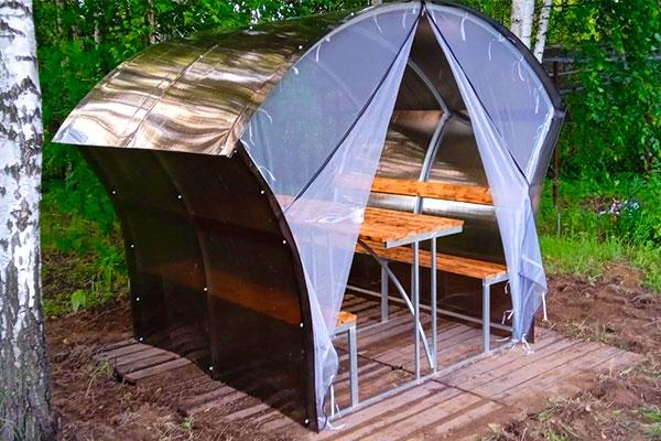 Беседка на приусадебном участке является неотъемлемой частью, если Вы любите комфортно проводить время на природе. Ведь беседка - это то уютное место, где можно душевно посидеть с друзьями или семьей, отдохнуть на природе или устроить пикник. В этом Вам поможет беседка "Астра", которая подарит Вам уют в солнечную и даже дождливую погоду! Простая и надежная конструкция покрывается сотовым поликарбонатом с ультрафиолетовой защитой, который защитит Вас как от палящего солнца, так и от мелких осадков. Беседка "Астра" изготовлена из оцинкованной сварной трубы не подверженной коррозии, легко собирается и разбирается с помощью болтов и гаек. Беседка "Астра" может варьироваться по своим размерам (от 2 метров и до бесконечности), благодаря этому Вы можете сами выбирать длину своей беседки.