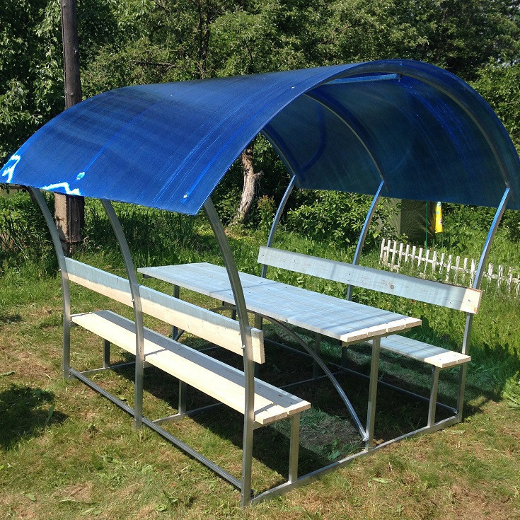 Беседка на приусадебном участке является неотъемлемой частью, если Вы любите комфортно проводить время на природе. Ведь беседка - это то уютное место, где можно душевно посидеть с друзьями или семьей, отдохнуть на природе или устроить пикник. В этом Вам поможет беседка "Астра", которая подарит Вам уют в солнечную и даже дождливую погоду! Простая и надежная конструкция покрывается сотовым поликарбонатом с ультрафиолетовой защитой, который защитит Вас как от палящего солнца, так и от мелких осадков. Беседка "Астра" изготовлена из оцинкованной сварной трубы не подверженной коррозии, легко собирается и разбирается с помощью болтов и гаек. Беседка "Астра" может варьироваться по своим размерам (от 2 метров и до бесконечности), благодаря этому Вы можете сами выбирать длину своей беседки.