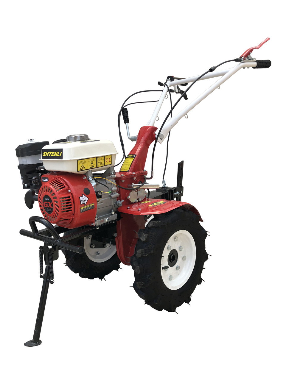 Мотокультиватор Shtenli 8000 Expert - представляет собой самоходную машину для подготовки и обработки почвы под посадку садовых и огородных культур, приводится в движение бензиновым двигателем мощностью 7,0 л.с., удержание культиватора во время работы и управление им осуществляется идущим за ним оператором за две ручки. Обработка почвы осуществляется ножами фрез (устанавливаются вместо транспортировочных колес), которые при вращении отрезают пласты почвы, крошат и перемешивают их, одновременно вызывая поступательное движение культиватора. Мотокультиватор поставляется с колесами. Вала отбора мощности нет.
