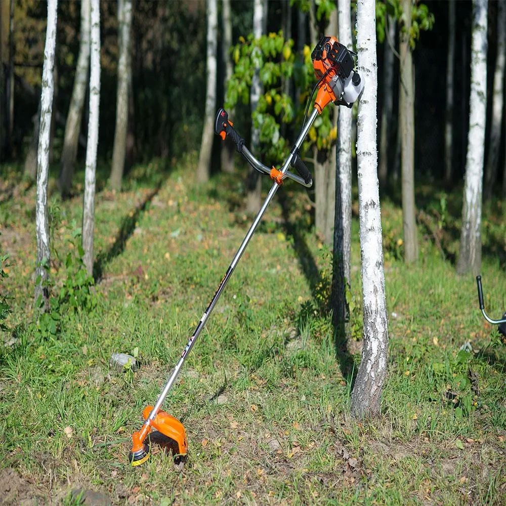 Бензиновый триммер GT с надежным двухтактным двигателем мощностью от 1.1 кВт до 4.5 кВт подойдет для ухода за газоном, скашивания травы, сорняков и кустарников на неровной местности. Триммерная головка травокосилки, рабочий диаметр которой составляет 430 мм, имеет кнопку автоматической подачи лески. Вместо катушки возможна установка ножа диаметром 230 мм для покоса жесткой растительности. Данная модель мотокосы отличается увеличенным моторесурсом, небольшим весом мотора для своей мощности, низким уровнем шума при выполнении работ, что позволяет использовать косу, как на даче, так и в жилой застройке. Максимум комфорта при кошении травы обеспечивают: система легкого старта для запуска двигателя, удобная рукоятка в виде велосипедного руля, широкий ремень рюкзачного типа.